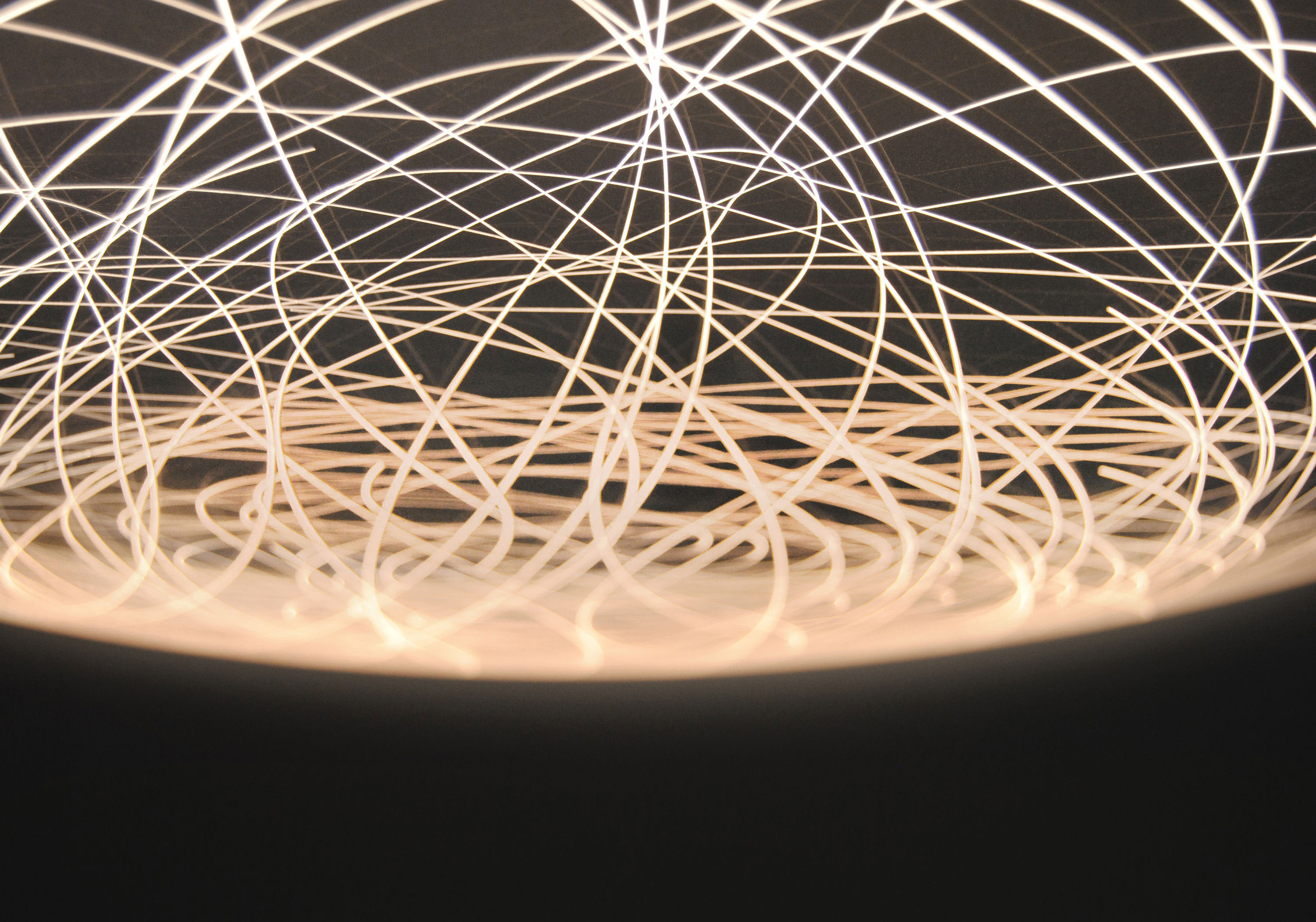 In ihrer Leichtigkeit erhaben schwebt Cielo im Raum. Die zurückhaltend wahllose Textur im gewölbten Acryl zeigt ihre überraschend starke Leuchtwirkung erst in ihrer Umgebung. Die Lichtfäden verbinden sich zu einem weichen, blendfreien Licht und schaffen eine angenehm homogene Beleuchtung.
