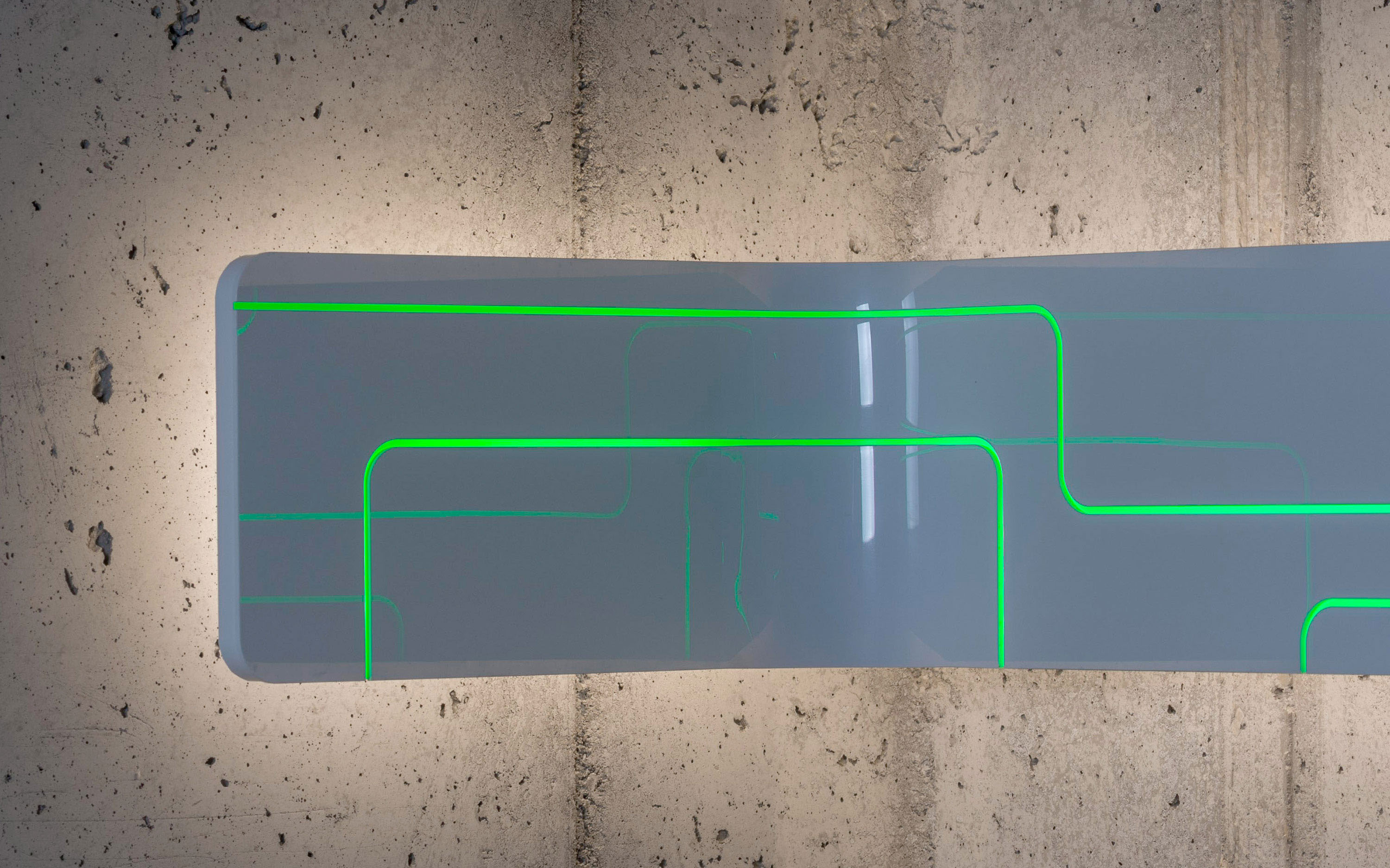 Eine faszinierende Komposition aus Linie, Licht und Farbe. Versura verbindet die dekorative Funktionalität indirekten Lichts mit farbwechselnden Lichteffekten.
